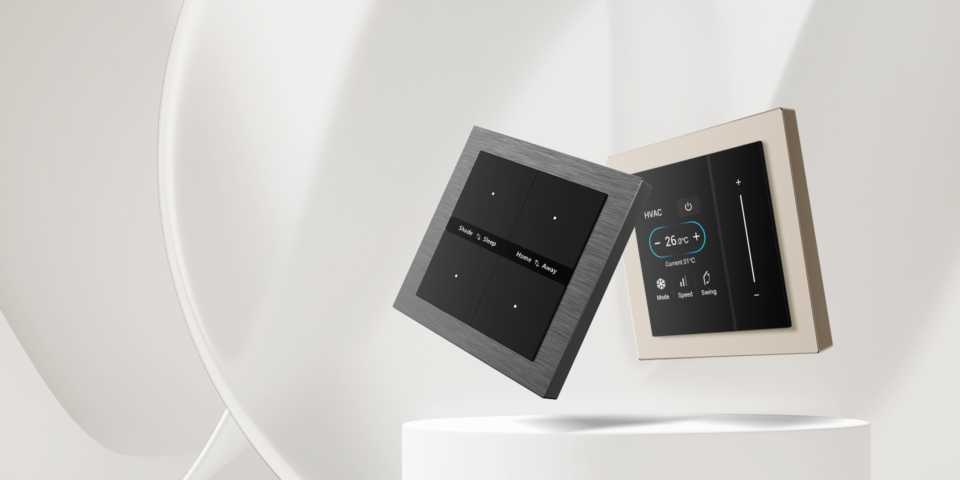 Break free from rigid switch panels. The Aura Series lets users mix switches, sockets, and temperature controls like building blocks. Users can customize the faceplate setup to match both the functional needs of their space and personal styles.